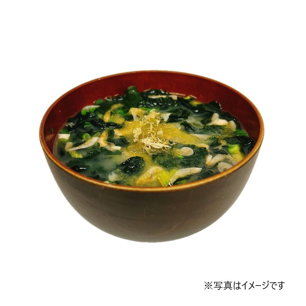わかめ(韓国産)、素干しエビ、とろろ昆布(昆布(北海道産)、醸造調味料、砂糖、醤油、食塩)、乾燥ネギ、(一部に大豆・小麦を含む)/調味料(アミノ酸等)、酸味料