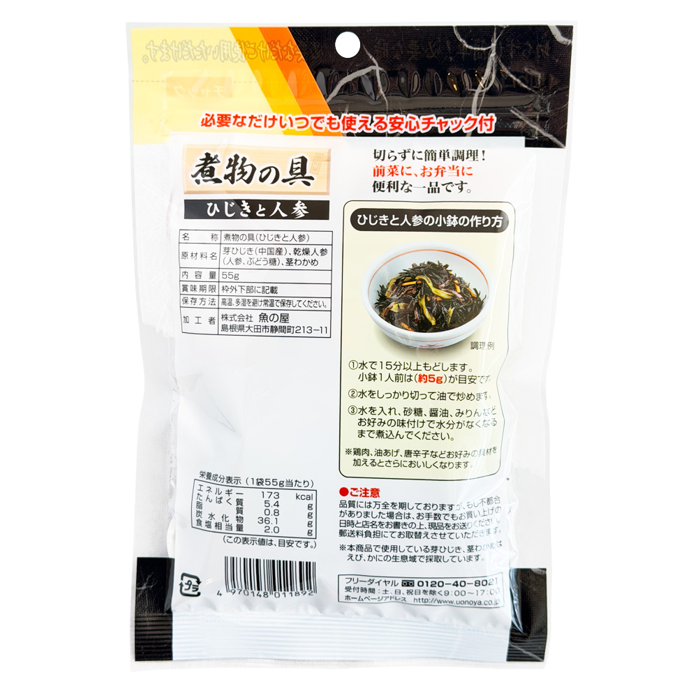 芽ひじき(中国産)、乾燥人参(人参、ぶどう糖)、茎わかめ
